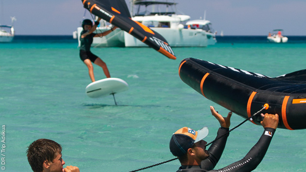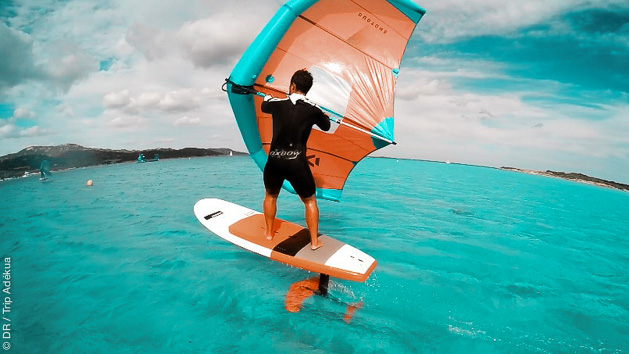 Si vous n’avez jamais fait de foil, vous pouvez tout de même tester la Wing ; mais si vous avez l’occasion de vous faire tracter derrière un bateau avec un foil, cela vous habituera aux sensations.